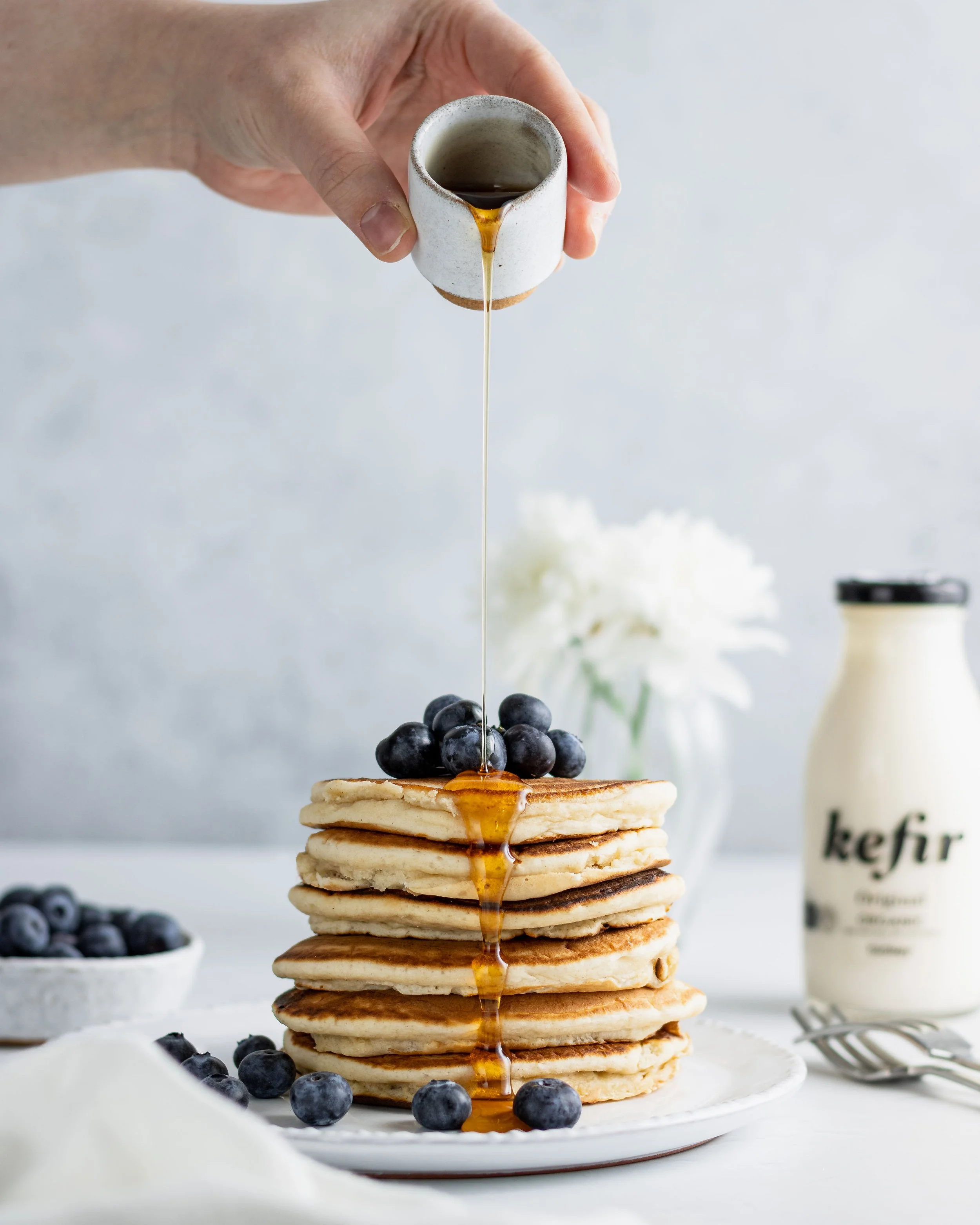 Serve with maple syrup, fresh fruit and extra kefir, if you like.